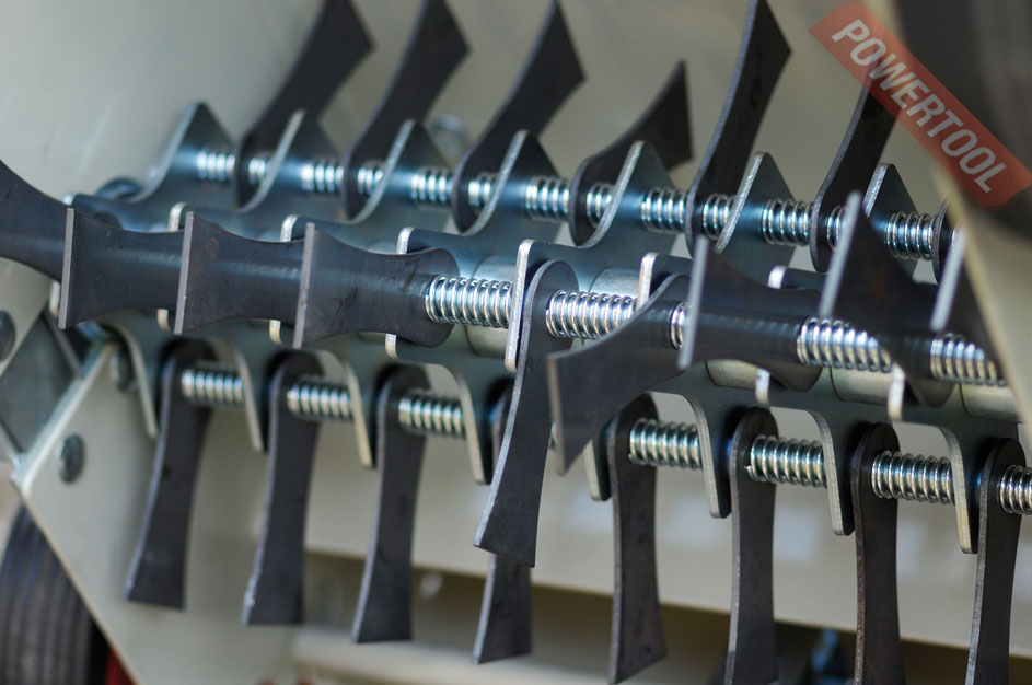 - Свободно подвешенные ударные износостойкие и долговечные ножи из закаленной стали. Эффективно удаляют мох и сухую траву. Очистка лезвий осуществляется автоматически при вращении.