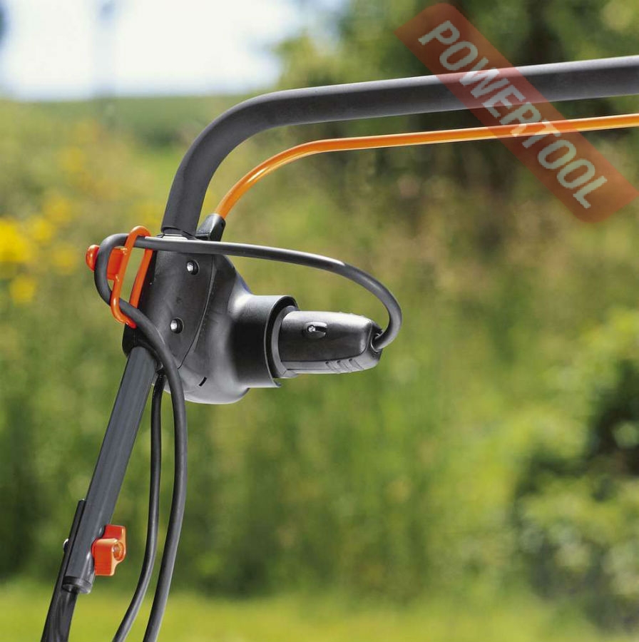• Большие колеса с профильным рисунком облегчают управление и обеспечивают хорошее сцепление с поверхностью газона.