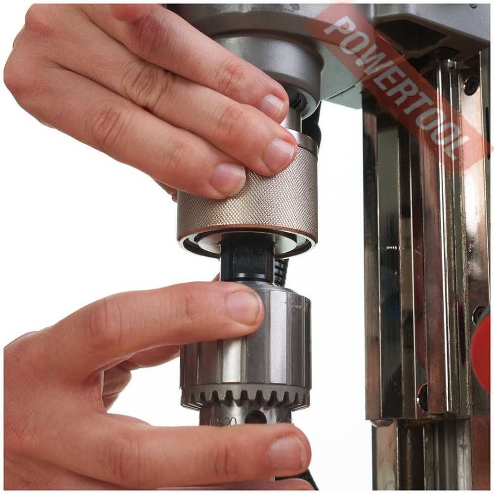 - Максимальный диаметр сверления кольцевыми фрезами 38 мм и максимальный хвостовик цилиндрического сверла 13 мм.