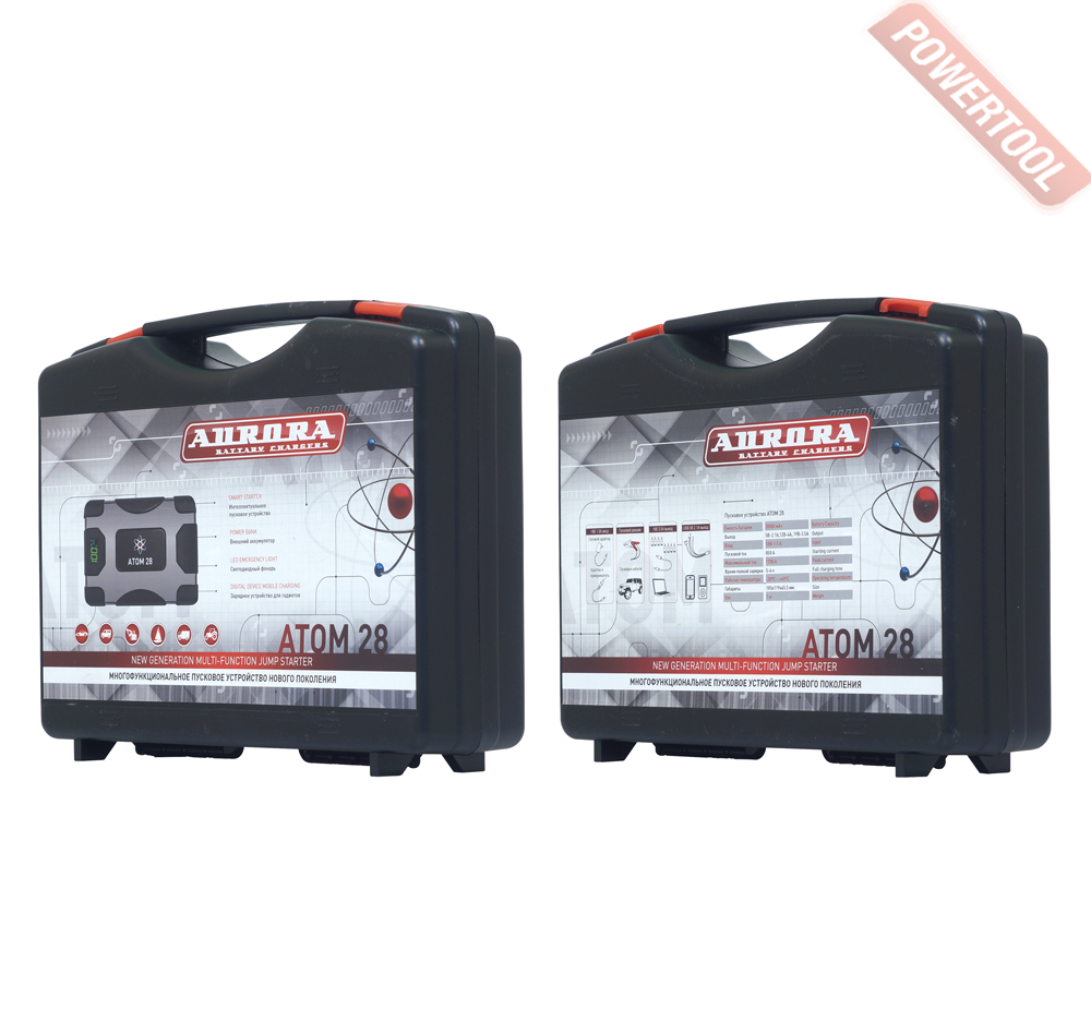 Автономное пусковое устройство AURORA Atom 28 - мобильное пусковое устройство нового поколения, оснащённое встроенным литий-полимерным аккумулятором LiPo. Предназначено для запуска двигателей мотоциклов, легковых машин, генераторов и прочих устройств для питания которых используется 12В аккумуляторы. Мощности устройства хватит для запуска практически любых известных бензиновых двигателей легковых машин и для запуска дизельных двигателей до 4-6л. С помощью АТОМ 28 можно заряжать и питать мобильные телефоны и планшеты, ноутбуки. Мощный LED-фонарь поможет осветить место работы в течение нескольких суток. Режим мигания фонаря "SOS" поможет подать сигнал бедствия или предупредит других участников движения в случае неисправности фар. Благодаря малому весу, высокой мощности и компактным габаритам ATOM 28 можно использовать в длительном походе, в командировке или на рыбалке.