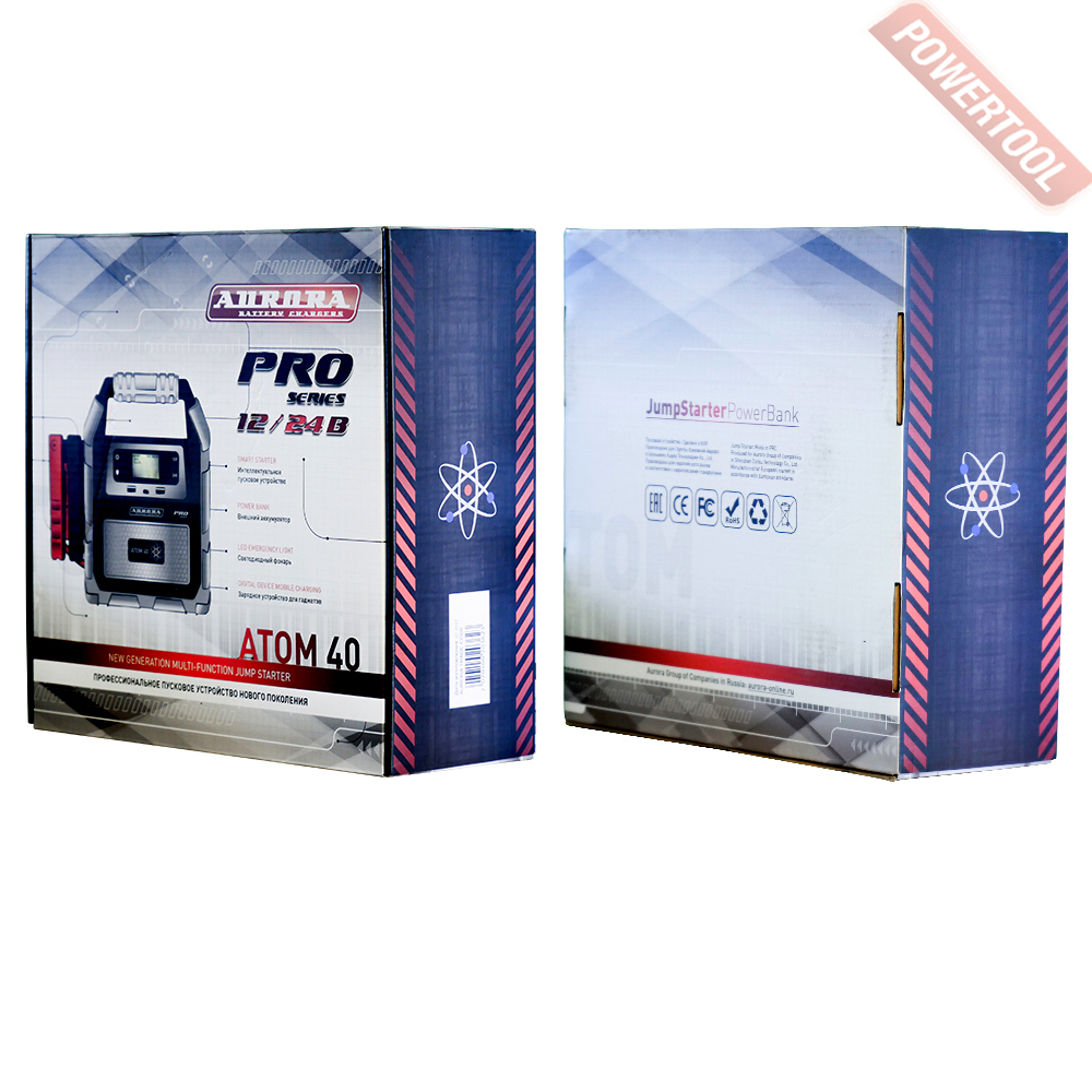 Автономное пусковое устройство AURORA Atom 40 - это самое мощное устройство в линейке LiPo пускачей AURORA для запуска двигателей не только легковых, но и грузовых автомобилей. Устройство с уникальной на рынке пусковой мощностью в режиме 24Вольта незаменимо в качестве аварийного источника для запуска грузовых автомобилей.