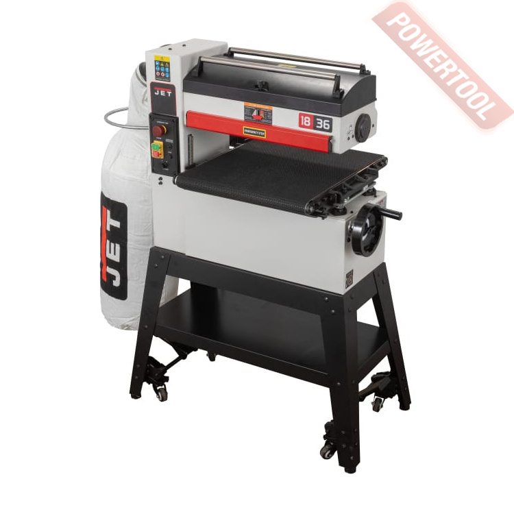 Барабанный шлифовальный станок JET DDS-237 - мощный профессиональный шлифовальный станок, предназначенный для эксплуатации на производстве. При условии небольшого съёма материала подходит для калибрования изделий из дерева, клееных пустотелых фасадов, деталей из МДФ и прочих подобных, причем их сразу же можно будет оклеивать пленкой без дополнительной шлифовки. Конструкция с двумя валами позволяет использовать абразивы с разной зернистостью, то есть за один проход производить грубую и финишную шлифовку. Для достижения наилучшего результата предусмотрена точная регулировка положения выходного вала относительно приёмного, высоту которого подбирают в зависимости от зернистости абразива. Регулировка по высоте шлифовки производится независимо за счет опускания транспортёрного стола. Он размещен на четырёх опорах и регулируется с точностью до 0,2 мм по всей ширине. На практике, разброс толщины после шлифовки на хорошо настроенном DDS-237 значительно меньше. При такой точности станки способны снимать за один проход до 1,5 мм по всей ширине, необходимо лишь правильно подобрать абразив и скорость подачи (2 или 3 м/мин). Основным фактором успешной и безотказной эксплуатации этих моделей является мощный пылеотвод и правильный подбор шлифовальных лент.