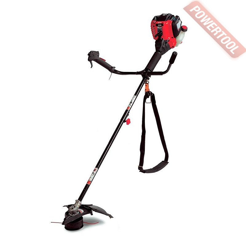 Триммер мотокоса бензиновый, 4-х тактный двигатель объёмом 29 куб.см мощностью 0,92 л.с., полуавтоматическая шпуля с леской диаметром 2,4 мм, диаметр круга скашивания леска / нож - 46 / 20 см, прямая штанга с редуктором и металлическим валом, T-образная рукоятка, разъем для насадок, система облегченного запуска AST, топливный бак 0,4 л, вес 8 кг, шпуля, нож, двухплечевой ремень.