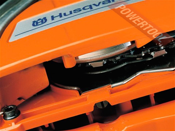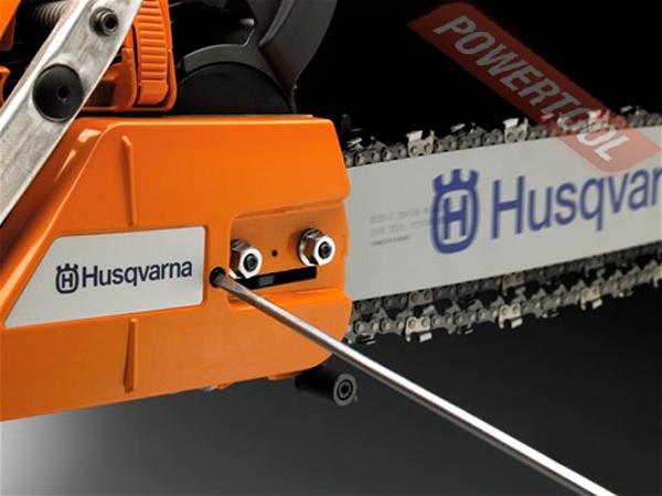 - Установленный сбоку на корпусе натяжитель цепи. Боковое натяжение цепи делает ее регулирование быстрым и легким