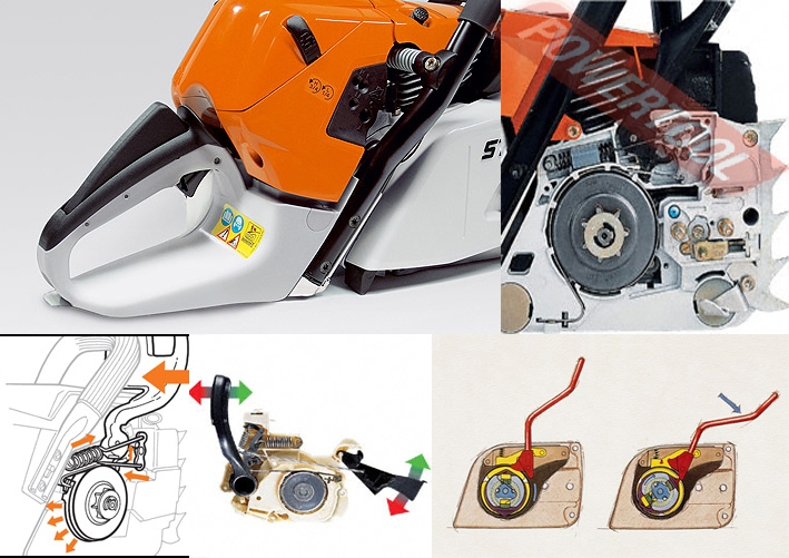 - Тормоз QuickStop для моментальной остановки цепи. Цепной тормоз QuickStop - это защитный механизм при работе с бензопилами. Цепной тормоз срабатывает при нажатии на передний упор для рук и за считанные доли секунды останавливает пильную цепь. При достаточно сильной отдаче цепной тормоз QuickStop срабатывает автоматически