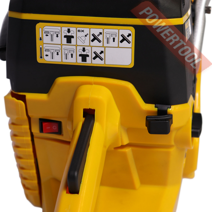 Конструкция бензореза позволяет переставлять режущий узел с внутренней стороны на внешнюю.