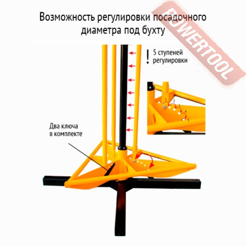- Пятиступенчатая регулировка под внутренний диаметр бухты. Гаечные ключи для регулировки в комплекте!