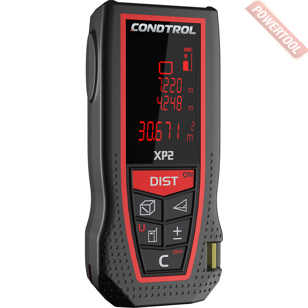 Дальномер лазерный CONDTROL XP2 - это старшая модель дальномера XP1. Диапазон измерений CONDTROL XP2 – до 70 метров, а точность 1,5 мм. Новинка, в сравнении с XP1, обладает дополнительным функционалом - расширенный Пифагор, измерение площади стен и функцией измерения угла наклона, которая на основании всего одного замера позволяет вычислить горизонтальное и вертикальное проложения, а также угол наклона. В дальномер CONDTROL XP2 встроен пузырьковый уровень, который будет очень полезен в работе.