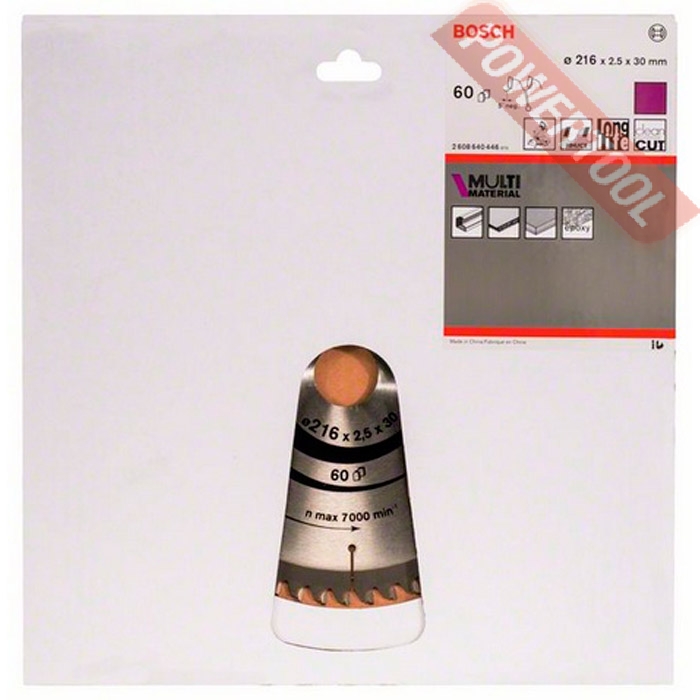 - Диск пильный универсальный 216х30 мм BOSCH арт.2608640446 - всего один пильный диск для любого применения. Диск серии Multi Material - идеальный пильный диск для внутренней отделки и мелкого ремонта. Благодаря попеременно расположенным трапециевидным/плоским зубьям из твердого сплава он обеспечивает эффективное пиление различных материалов с чистыми кромками