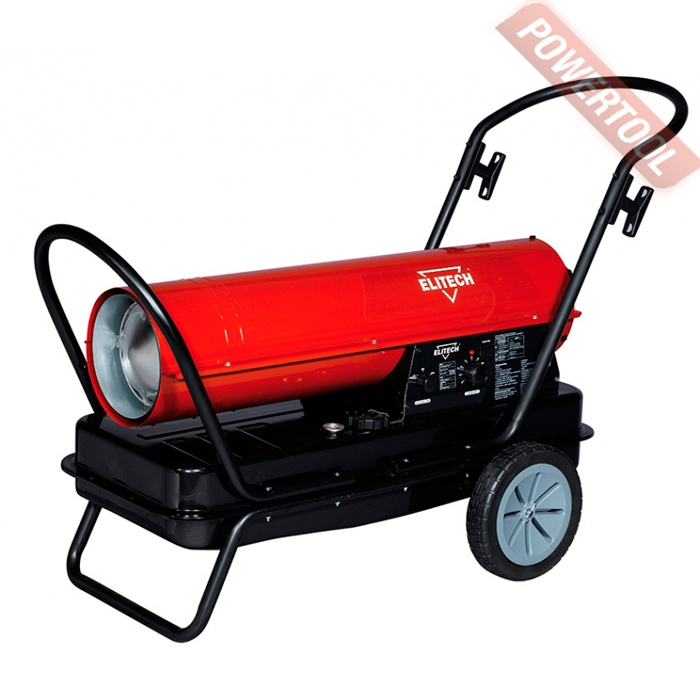 Дизельная тепловая пушка прямого нагрева ELITECH ТП 55ДБ может применяться на открытых или хорошо проветриваемых объектах, например, на строительных площадках, заводах, в складских помещениях. Предназначена для высокопроизводительного обогрева нежилых помещений, прогрева бетона или грунта при строительных и ремонтных работах. За короткое время может, обеспечить теплом большое пространство до 340 кв.м. Открытая камера сгорания выбрасывает вредные продукты вместе с горячим воздухом, поэтому применять в закрытых помещениях с людьми её нельзя. Перемещение и ввод в эксплуатацию не требует особых усилий и знаний. Запуск осуществляется нажатием одной кнопки, после продува системы происходит поджиг и дизельное топливо начинает равномерно сгорать в камере, а вентилятор создает воздушный поток и выдувает теплые массы в окружающее пространство. Уже на первой минуте работы жидкотопливного нагревателя, ощущается высокий КПД системы. Установка этой машины должна происходить в помещениях с возможностью проветривания, давая тем самым выход продуктам сгорания. Так как в технологии изготовления применен процесс прямого нагрева, то вместе с прогретым воздухом из сопла выходят элементы горения. Если нагнетательное давление сбалансировано и форсунка настроена правильно, то выхлопов минимальное количество, копать и темный дым отсутствуют.