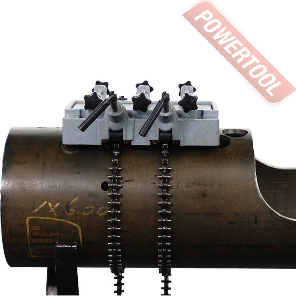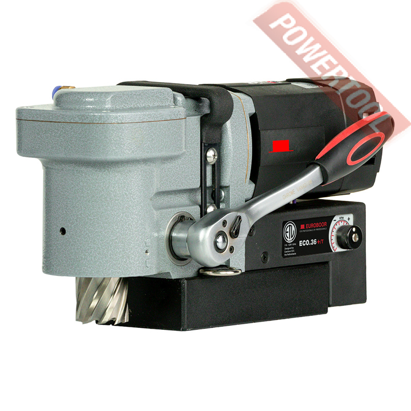 • Мощность 1200 Вт двигателя, передаваемая через трехступенчатый редуктор, позволяет сверлить с помощью коронок отверстия диаметром до 42 мм в стальных изделиях толщиной до 50 мм.