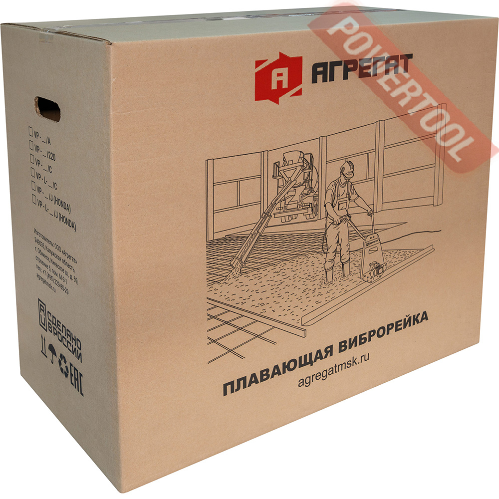 Электрический привод плавающей виброрейки для бетона АГРЕГАТ ВП является основным агрегатом. Виброрейка применяется в строительном производстве для распределения, уплотнения и выравнивания цементной смеси, или бетона. Выполнение этой работы необходимо в процессе залива дорог, полов, фундаментных плит и различных бетонных площадок. Принцип работы заключается в вибрационном воздействии рабочей части на бетонный раствор, из-за чего происходит равномерное уплотнение с формированием гладкой поверхности. Выносной руль в конструкции виброрейки позволяет работать одному оператору, а наличие резиновых демпферов и регулировки угла наклона руля позволяет сделать работу максимально комфортной. Виброрейки данного типа могут иметь длину до 3 метров, глубина воздействия – до 175 мм.