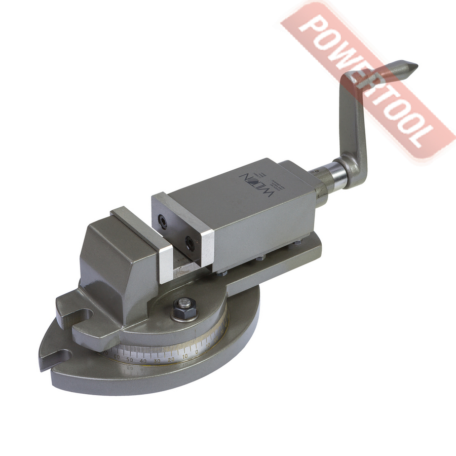 Фрезерные прецизионные тиски, ширина губок 50 мм, рабочий ход 50 мм, высота губок 25 мм, функция поворота 360 градусов, размер ДхШхВ 298х102х78 мм, вес 3,5 кг.