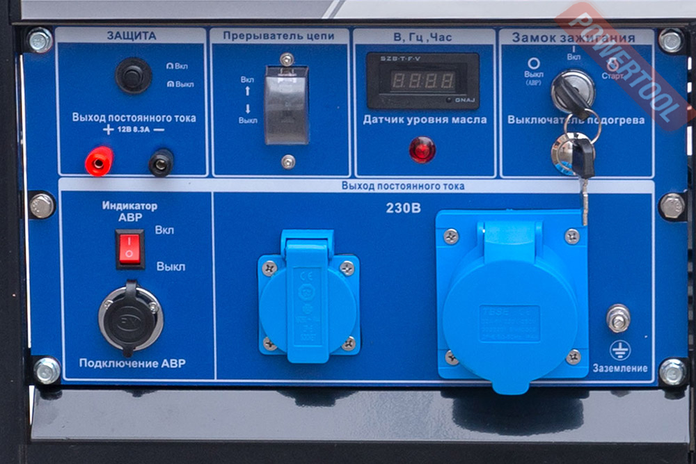 - Розетки: 220В – 16А 1 шт., 220В - 32А 1 шт.(промышленная), что позволяет подключать разные электроинструменты.