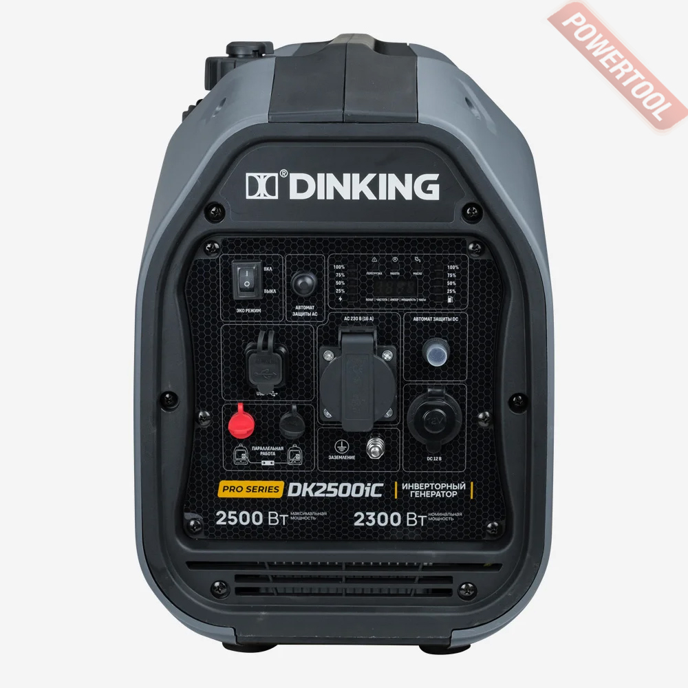 Генератор инверторный DINKING DK2500iC - это удобный, малошумный, портативный и экономичный источник питания с максимальной мощностью 2500 Ватт. Уровень шума при работе инверторного генератора гораздо ниже обычных бензогенераторов, а его компактность позволяет его перевозить даже в обычной легковой машине, он идеально подходит для кемпингов и частных домов, где есть необходимость дополнительного комфорта.