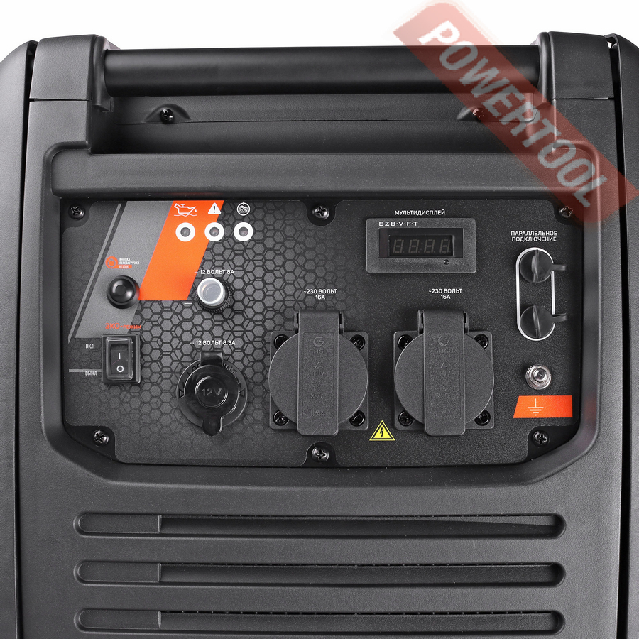• Особенностью моделей является функция параллельного подключения. Возможно объединить мощность 2-ух генераторов с помощью специального устройства.