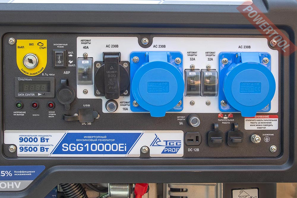 Генератор инверторный ТСС TSS SGG 10000Ei с электростартом и разъемом для подключения блока автоматики, вырабатывает электричество с высокой точностью частоты и напряжения. Мощная инверторная электростанция подходит не только для частного дома. Номинальная мощность 9,0 кВт электростанции достаточно для работы большого количества высокочувствительных электроприборов, а также оборудования высокой мощности. Благодаря использованию В этой модели инверторного преобразователя, на выходе получается стабильный ток, без каких-либо скачков, генератор способен регулировать работу двигателя в зависимости от нагрузки: к примеру, если нагрузка составляет половину от выходной мощности, то и мощность двигателя снижается вдвое; это дает значительную экономию топлива, инверторные модели получаются более легкими и компактными, чем традиционные генераторы.