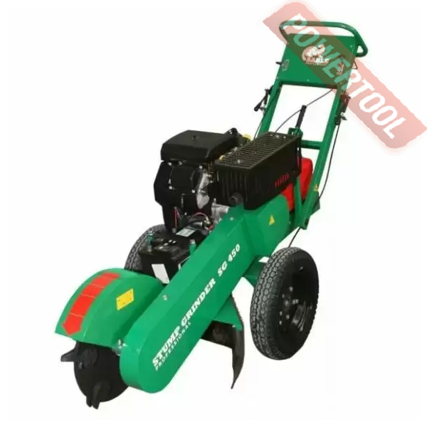 Измельчитель пней несамоходный SABLE SG450Е/25 применяется для уничтожения пней деревьев с возможностью проникновения фрезы на глубину 20 см ниже уровня земли. Минимальный диаметр пня не ограничен, но рекомендуется обрабатывать пни диаметром до 80 см - это связано с размерами оборудования. Рабочим органом является дисковая фреза с твердосплавными сменными ножами. Фреза крепится на раме, которая имеет возможность движения вверх-вниз и влево-вправо. Автоматический арретир подвижной верхней конструкции и простое управление максимально облегчают обращение с машиной. Принцип работы прост: оператор подъезжает к пню, блокирует колеса, включает фрезу, выбирает требуемую высоту и движениями влево-вправо с дальнейшим заглублением уничтожает пень.