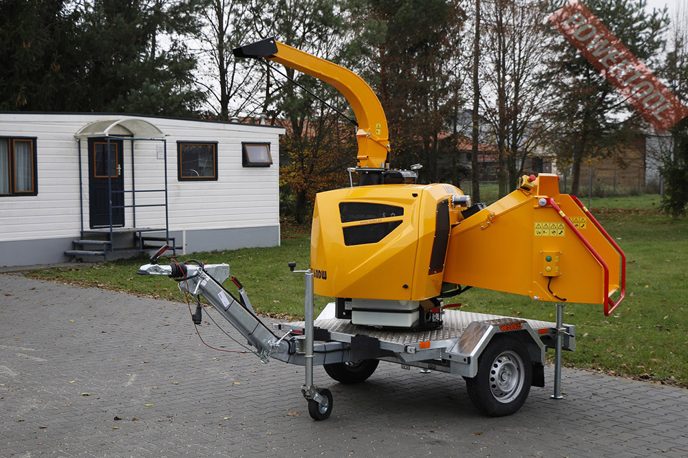 - Дополнительное оборудование. Для большей устойчивости во время работы, а также для наиболее безопасной транспортировки коммунальный измельчитель веток может устанавливаться на специальное двухосное шасси.