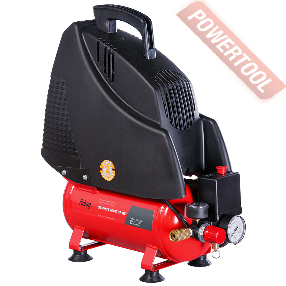 Компрессор безмаcляный коаксиальный FUBAG Service Master Kit - набор предназначен для технического обслуживания офисной и бытовой техники, требующего регулярной очистки от пыли.Суперкомпактный безмасляный компрессор с небольшим ресивером 6 литров и производительностью 180 л/мин. Легко запускается при низких температурах. Уверенно работает на неровных и наклонных поверхностях. Безмасляный компрессор - это чистый, без примесей масла, воздух на выходе, что особенно важно там, где чистота воздуха оказывает огромное влияние на результат.