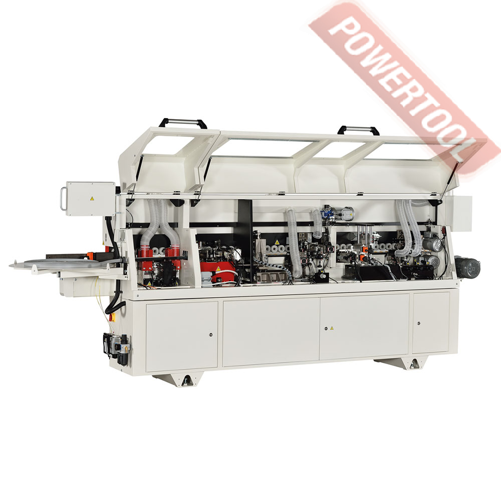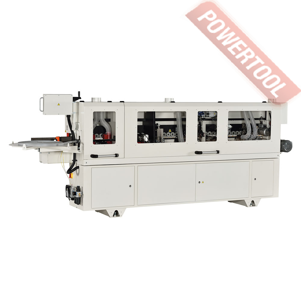 Кромкооблицовочный станок JET JEB-45CR - хорошо оснащенный кромкооблицовочный станок с простым и удобным управлением через сенсорный графический экран с русифицированным меню. Общее устройство аналогично другим моделям Jet: подающий конвейер цепного типа, клеевая ванна с тефлоновым покрытием и пятью нагревательными элементами, узлы автоматической торцовки свесов кромки и продольного фрезерования со следящим механизмом, но есть и существенные отличия. Прежде всего, это наличие узла прифуговки, производящего подготовку поверхности заготовки к склеиванию. Кроме устранения дефектов, возникших при распиловке, он «подгоняет» размер панели под толщину кромки так, чтобы он не увеличился на толщину облицовочного материала, а остался прежним, что очень удобно при работе с разными отделочными материалами. Кроме того, станок имеет более совершенный механизм обработки наклеенной кромки: после продольного фрезерования свесов производится дополнительная операция – фрезерования фаски (механизм аналогичен фрезерующему продольные свесы) - и лишь затем циклевка и полировка, это позволяет улучшить качество производимой продукции.Управление настройкой механизировано: многие операции, выполняемые на более простых станках вручную, здесь производятся электрическими приводами. Так, для переналадки на панели другой толщины достаточно ввести команды с панели сенсорного экрана. Основные узлы, требующие периодической смазки, подключены к централизованной системе с ручным насосом. Такое решение способствует существенному продлению ресурса, поскольку ежедневной смазкой вручную часто пренебрегают. По своим эксплуатационным характеристикам JEB-45CR является полноценным станком для работы в условиях поточного производства, долговечным, производительным и гибким в переналадке.