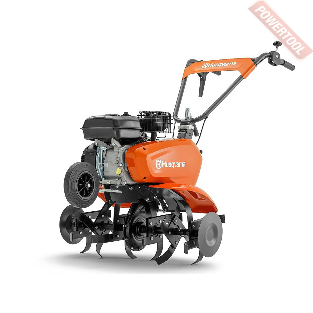 Культиватор бензиновый HUSQVARNA TF 335 - надёжный, манёвренный и лёгкий в эксплуатации культиватор для рыхления и культивации почвы на приусадебном участке Агрегат оснащен четырьмя саблевидными фрезами диаметром 32 см (вращение по ходу движения) с максимальной глубиной работы до 30 см. Для защиты растений вне зоны культивации предусмотрены специальные металлические щитки. Складываемые, регулируемые по положению рукоятки и транспортное колесо облегчают эксплуатацию, транспортировку и хранение.