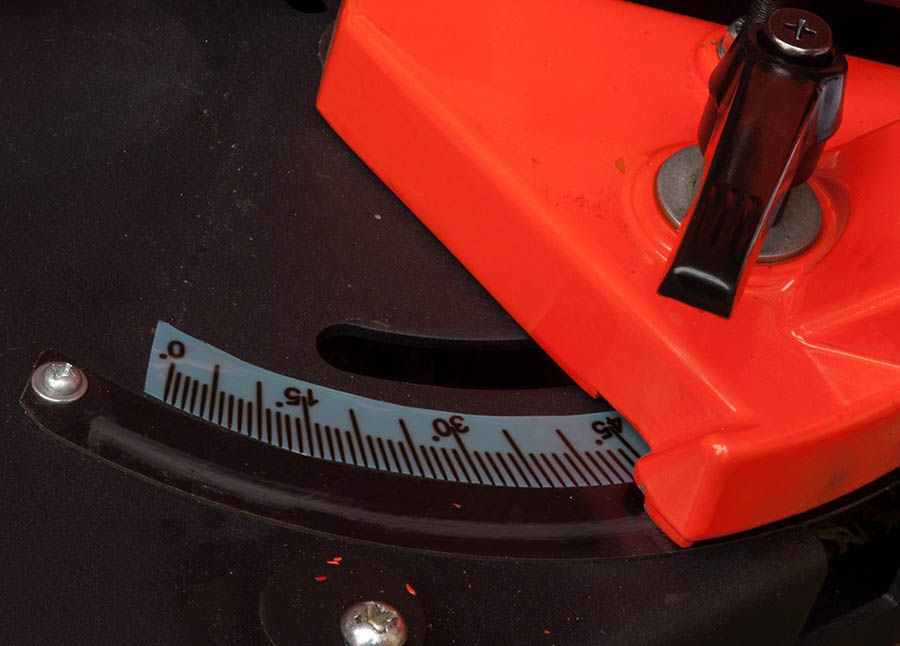 • Точность реза. Предусмотренная шкала позволяет выставлять необходимый угол реза, что гарантирует точность при пиление.