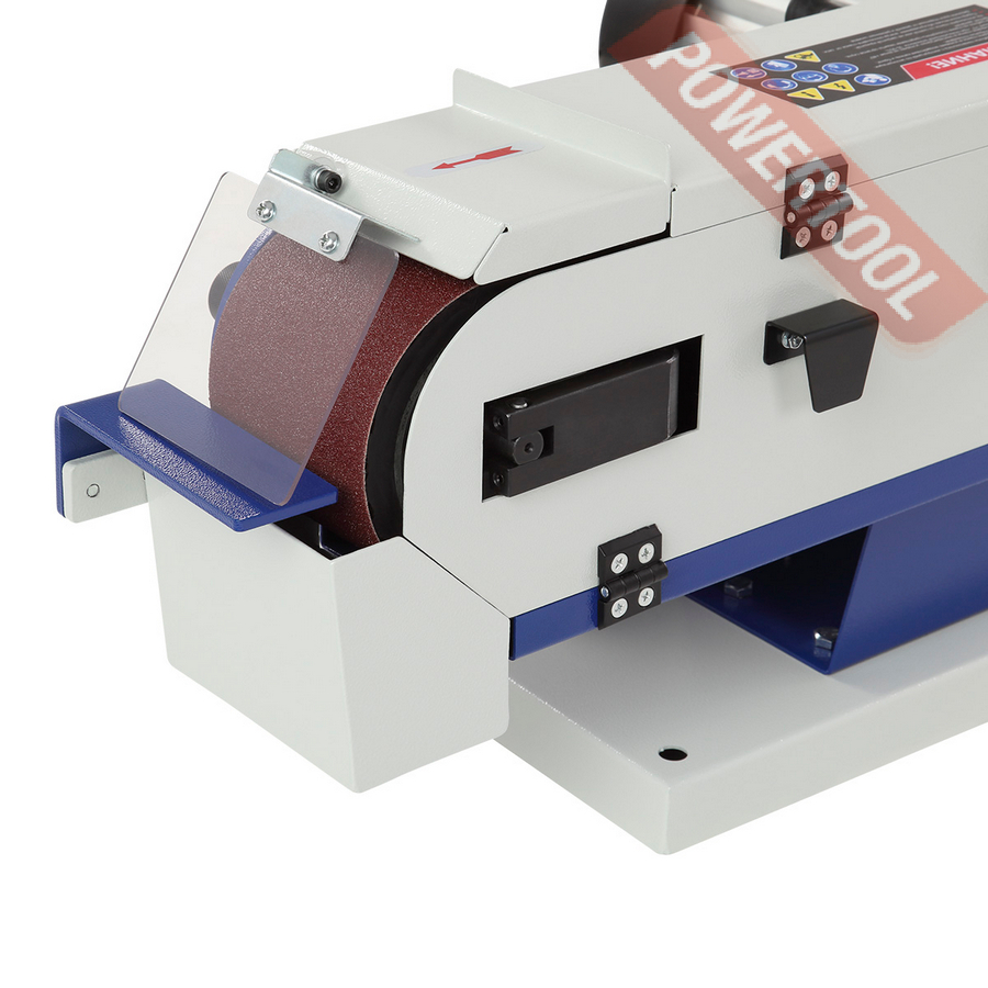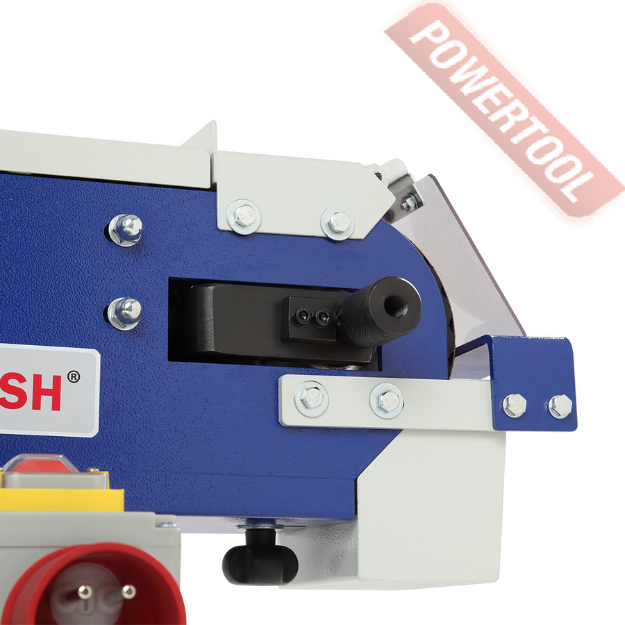 На станке установлена шлифовальная лента размером 1220х100 мм и зернистостью 80 грит. Скорость движения шлифовальной ленты составляет 9,5 и 19 м/с, что позволяет подбирать подходящую скорость в зависимости от поставленной задачи. Применяя шлифовальные ленты разной зернистости можно использовать станок для обработки различных материалов.