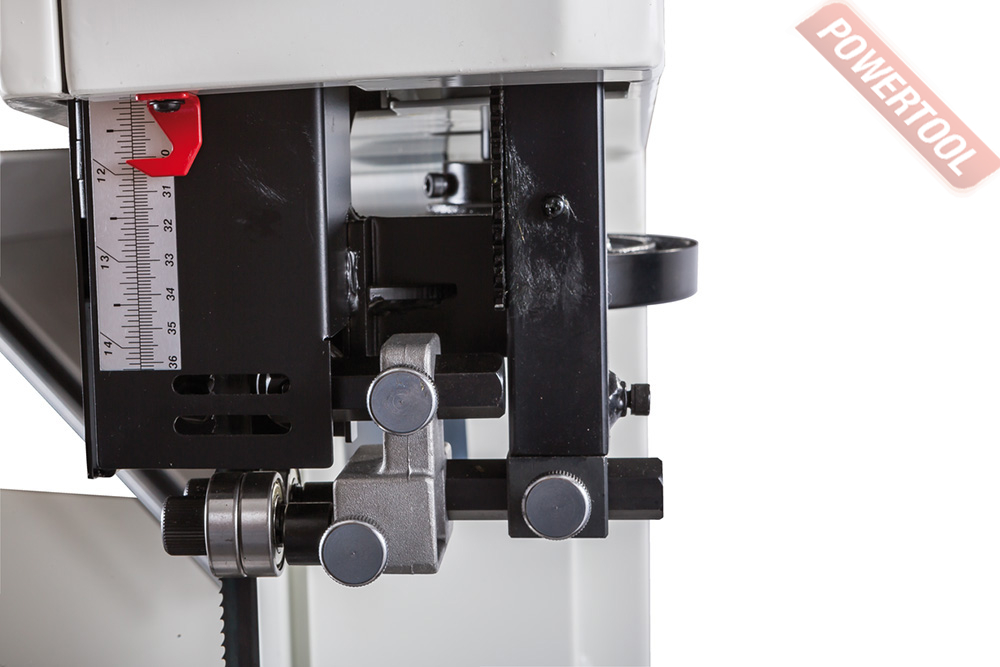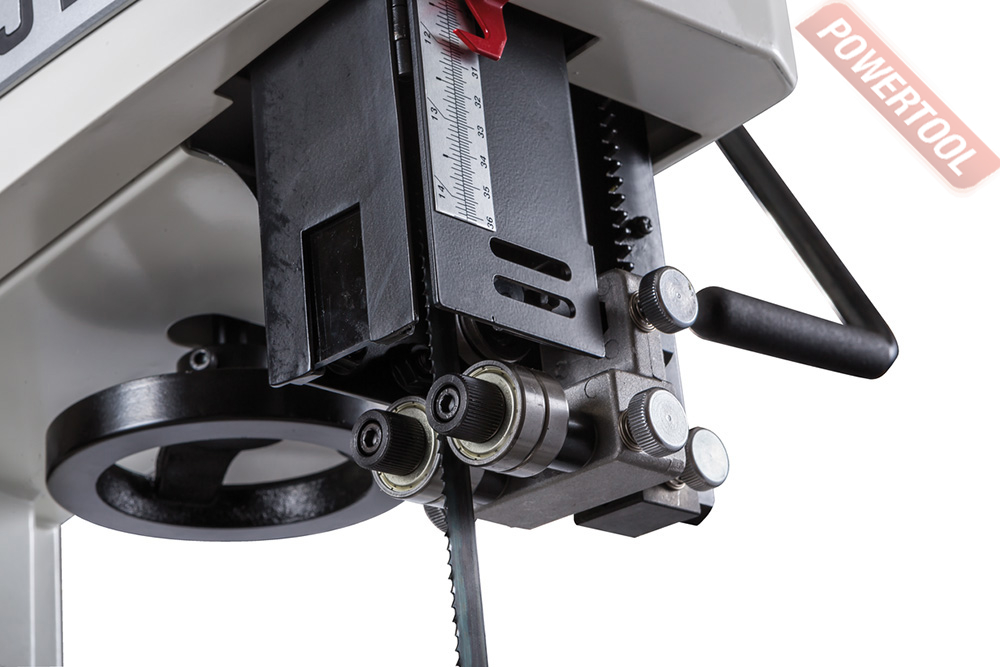 Ленточнопильный станок по дереву JET JWBS-15-T 380V - ленточная пила нового поколения, предназначенная для профессионального использования. Ее основное преимущество, на фоне аналогов прошлых поколений, - увеличенная высота распиловки. Этот параметр очень важен для тех, кому нужен универсальный станок, способный взять на себя функции делительного. К подобным работам приспособлен и параллельный упор: направляющий профиль можно установить вертикально на боковую грань так, чтобы надежно фиксировать плоские заготовки при их роспуске на тонкие пластины. В целом конструкция бокового упора очень хорошо проработана и соответствует самым строгим требованиям: профиль жесткий и прочный, закреплен на массивном чугунном кронштейне, который перемещается по цилиндрической направляющей. Предусмотрена грубая (вручную) и точная (микрометрическим винтом) установка.