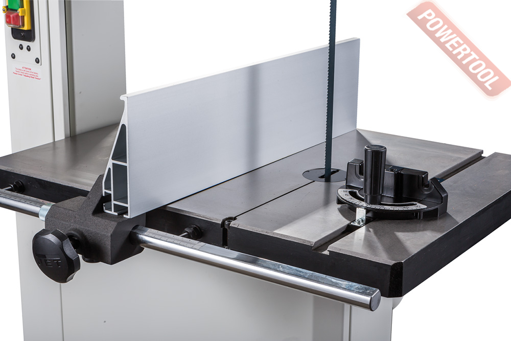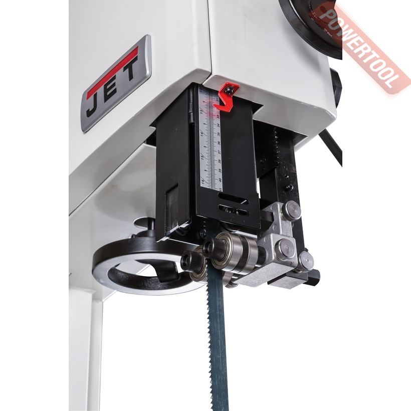 Ленточнопильный станок по дереву JET JWBS-18-M 220V- новая ленточная пила для профессионального применения. Ее основное преимущество на фоне аналогов прошлых поколений – увеличенная высота распиловки. Этот параметр очень важен для тех, кому нужен универсальный станок, способный взять на себя функции делительного. К подобным работам приспособлен и параллельный упор: направляющий профиль можно установить вертикально на боковую грань так, чтобы надежно фиксировать плоские заготовки при их роспуске на тонкие пластины. В целом конструкция бокового упора очень хорошо проработана и соответствует самым строгим требованиям: профиль жесткий и прочный, закреплен на массивном чугунном кронштейне, который перемещается по цилиндрической направляющей. Предусмотрена грубая (вручную) и точная (микрометрическим винтом) установка.