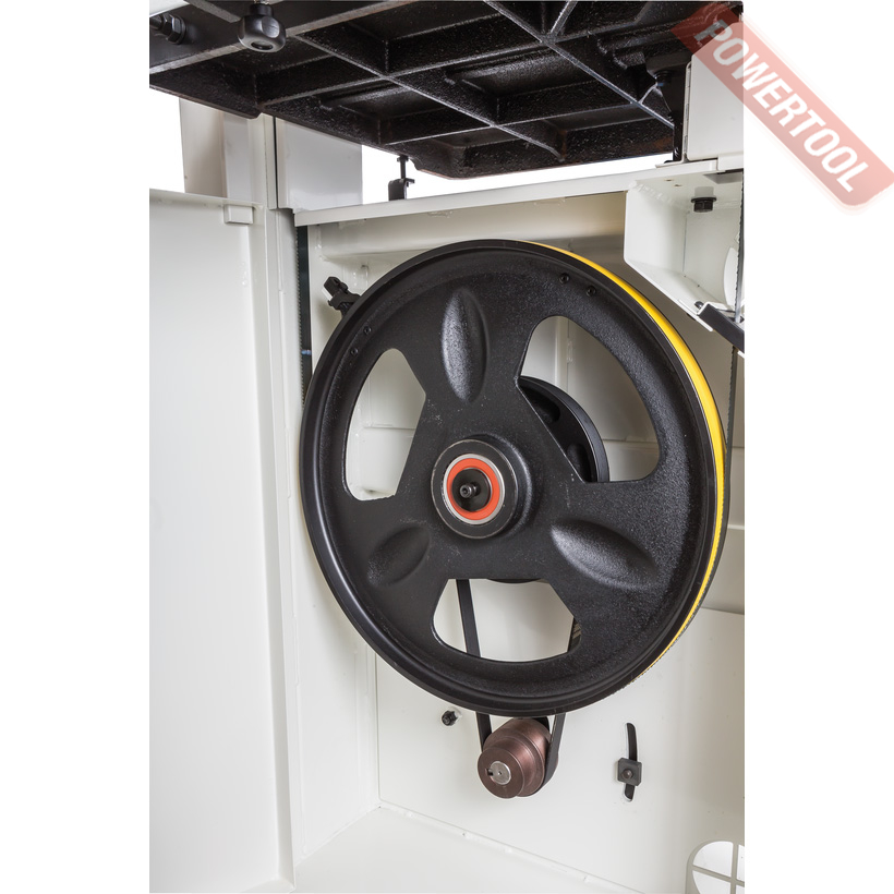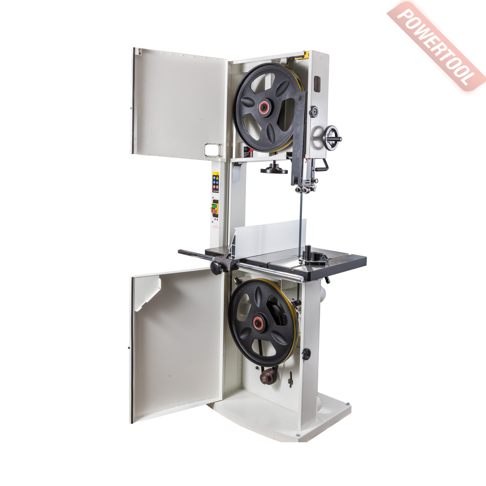 Ленточная пила по дереву, 2380 Вт, 220 В, мах высота реза 406 мм, мах ширина реза 457 мм, длина полотна 3810 мм, ширина полотна 3-30 мм, две скорости 580 / 900 м/мин, рабочий стол 508х690 мм, наклон стола от -5 до 45 градусов, диаметр шкивов 470 мм, вытяжной штуцер 100 мм, размер ДхШхВ 865х915х2035 мм, вес 217 кг, пильное полотно, параллельный упор, угловой упор.