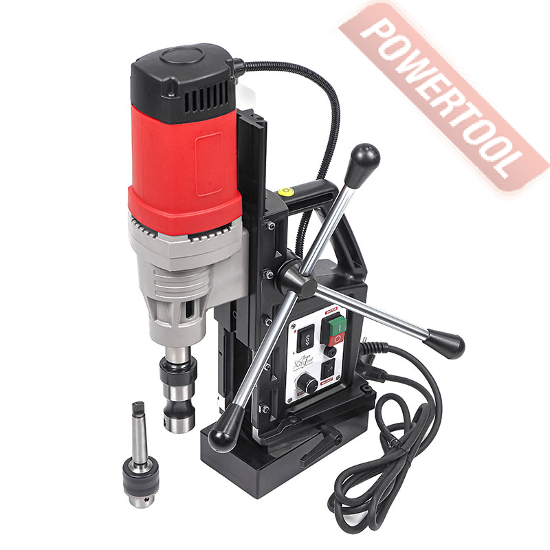 Магнитный сверлильный станок AktiTool AT-5000RE-Mr с диаметром сверления до 50 мм корончатым сверлом.