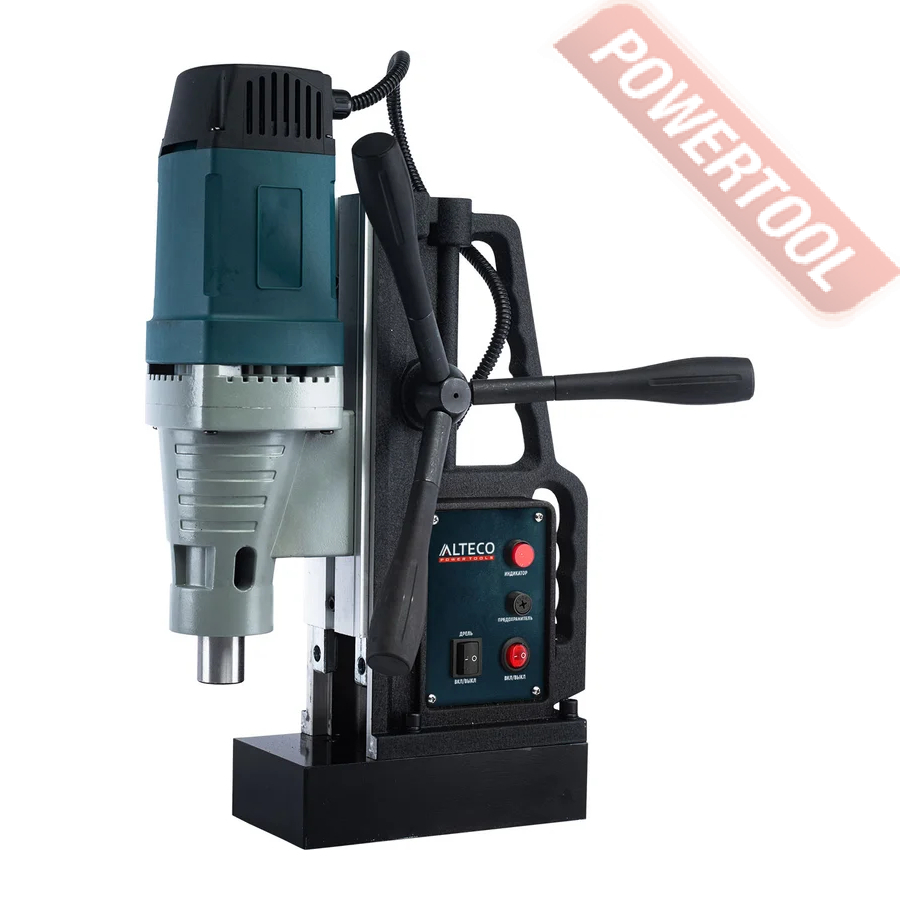 Магнитный сверлильный станок ALTECO MD 1938 предназначен для точного сверления отверстий в металлических конструкциях. Прочный корпус защищает двигатель от механических повреждений. Основные элементы управления вынесены на отдельную панель для удобства оператора. Электромагнит с увеличенной удерживающей силой обеспечивает надежное крепление к вертикальной и наклонной поверхности.