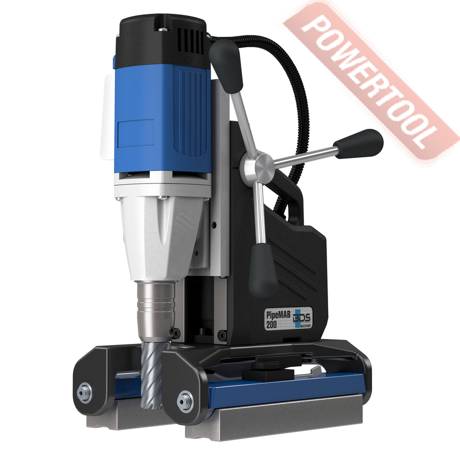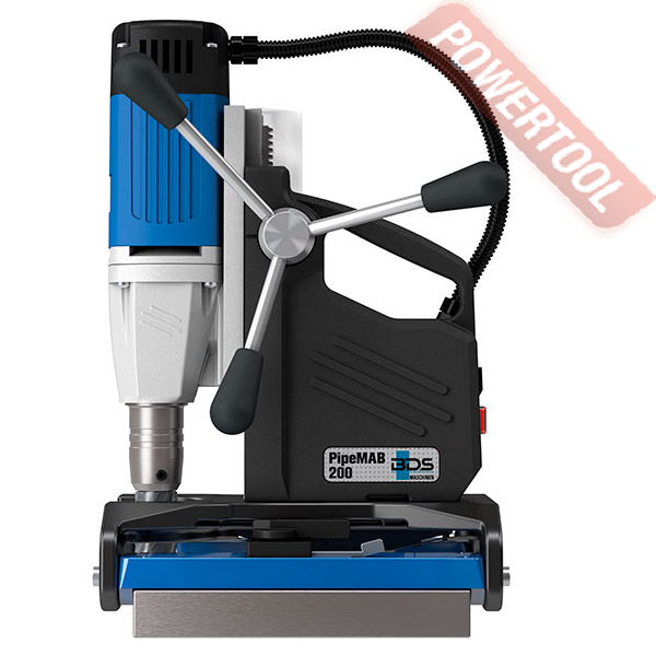 Магнитный сверлильный станок BDS PipeMAB 200 — станок на магнитном основании для сверления труб, оснащенный запатентованной системой зажима заготовки с помощью двух постоянных магнитов, которые автоматически адаптируются под размеры заготовки. Шарнирное расположение постоянных магнитов позволяет с легкостью устанавливать станок на трубах диаметром от 85 мм, на прямых поверхностях, а также внутри криволинейных поверхностей.