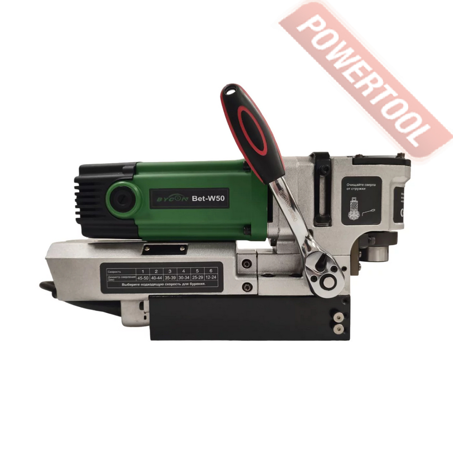 Магнитный сверлильный станок BYCON BET-50W идеально подходит для сверления в местах с ограниченными высотами, таких как двутавровые балки, швеллеры и т.д. Портативный BET-50W оснащен мощным магнитом, удобной для пользователя системой крепления фрезы и возможностью быстрой переустановки ручки право/лево.