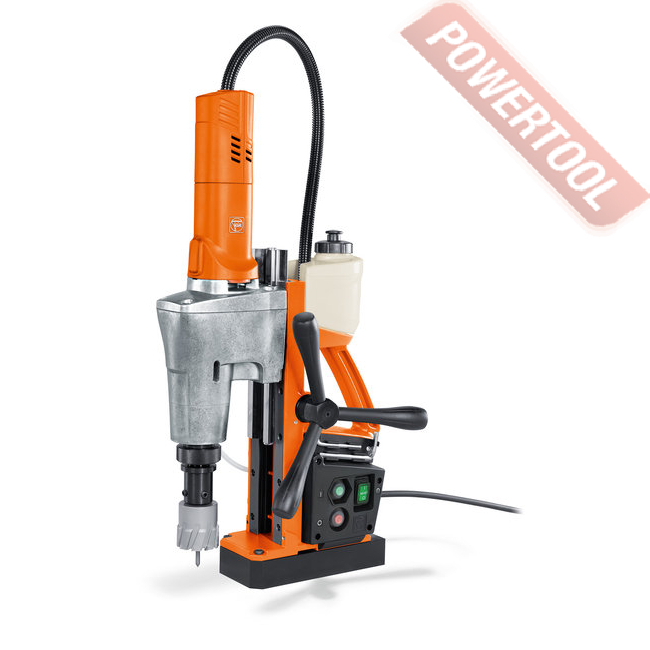 Магнитный сверлильный станок FEIN KBE 50-2 M - двухскоростной магнитный станок для сверления корончатым сверлом по металлу диаметром до 50 мм и спиральным до 23 мм. Хвостовик 3/4 Weldon (19 мм). Зажим инструмента через MK 3 (конус Морзе). Величина хода каретки 135 мм (полный диапазон хода 260 мм). Встроенный бачок для СОЖ. Установка рукояти подачи сверла с любой стороны. Выдерживает работу в жестких условиях благодаря высокому качеству изготовления. Долгий срок службы при минимальных затратах на обслуживание.
