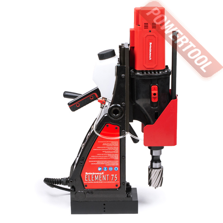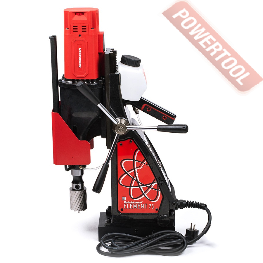 Магнитный сверлильный станок ROTABROACH Element 75 SB с поворотным основанием — мобильное металлообрабатывающее оборудование, предназначенное для обработки деталей сложной конфигурации и крупных размеров. Отличается от традиционных сверлильных станков наличием магнита (электромагнита), при помощи которого станок удерживается на обрабатываемом изделии.