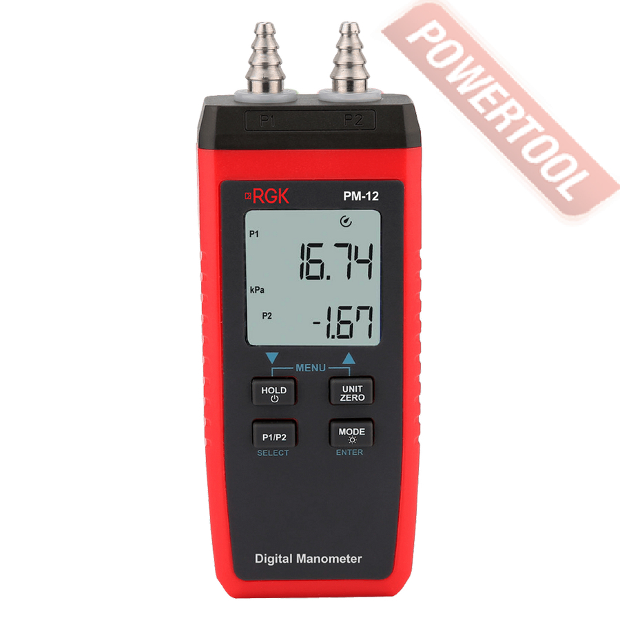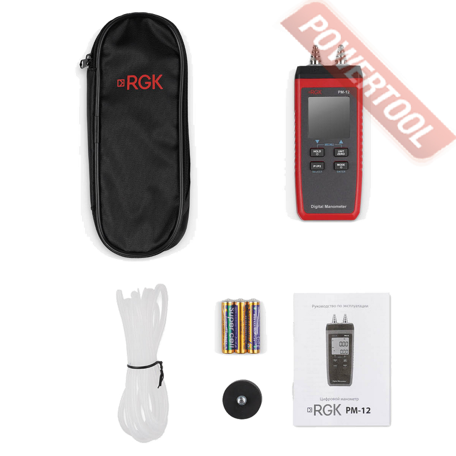 Манометр дифференциальный RGK PM-12 - двухканальный прибор для измерения манометрического и дифференциального давления, который часто используется при настройке и пусконаладке систем вентиляции, отопления и любых других, где есть движение воздушных масс.