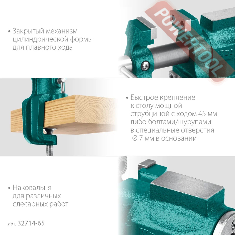 Многофункциональные настольные тиски 38/65х58 мм KRAFTOOL 3D-Mini арт.32714-65