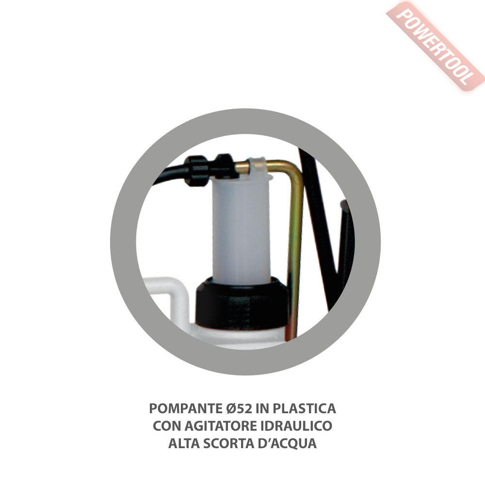 Нагнетание давления происходит не в баке с химикатами, а непосредственно в камере насоса, что позволяет исключить попадание ядовитых химикатов на человека в случае разрыва камеры.