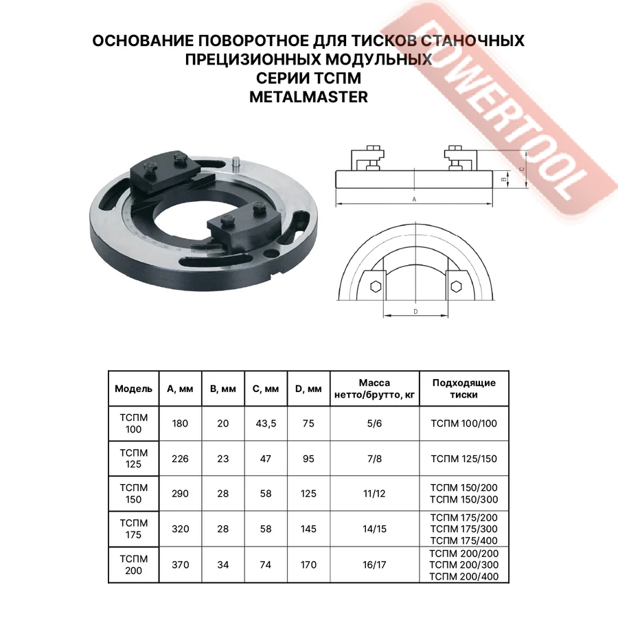 • 1. Основание поворотное для тисков METAL MASTER ТCПМ 100.