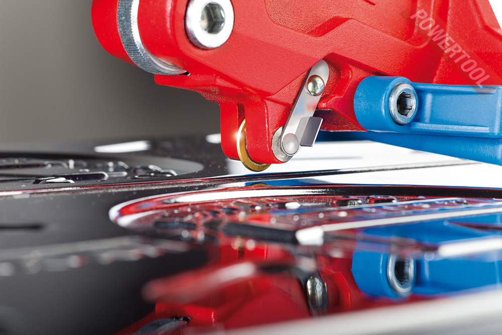 - Подпружиненные столы для безопасного разделения плитки и выдвижной опорный стержень для широкоформатных плиток.