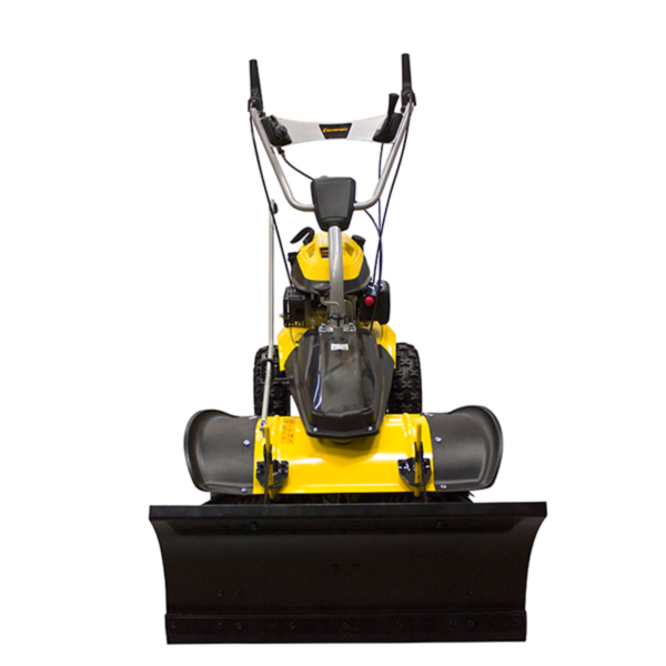 Самоходная щеточная подметальная машина, ширина щетки 80 см, диаметр 35 см, три скорости вперед от 2,5 до 4,3 км/ч и одна скорость назад 2,5 км/ч, 4-х тактный двигатель CHAMPION G170VK объемом 173 куб.см мощностью 5 л.с., топливный бак 1 л, емкость картера 0,6 л, материал щетины полипропилен для мокрой грязи и жесткого снега, 5 положений направления щетки, регулировка силы прижатия щетки и скорости вращения 180-350 об/мин, опорное шарнирное пневмоколесо, регулировка рукоятки по высоте, пневмоколеса 33x10 см, вес 75 кг, отдельно можно приобрести мусоросборник и нож-отвал.