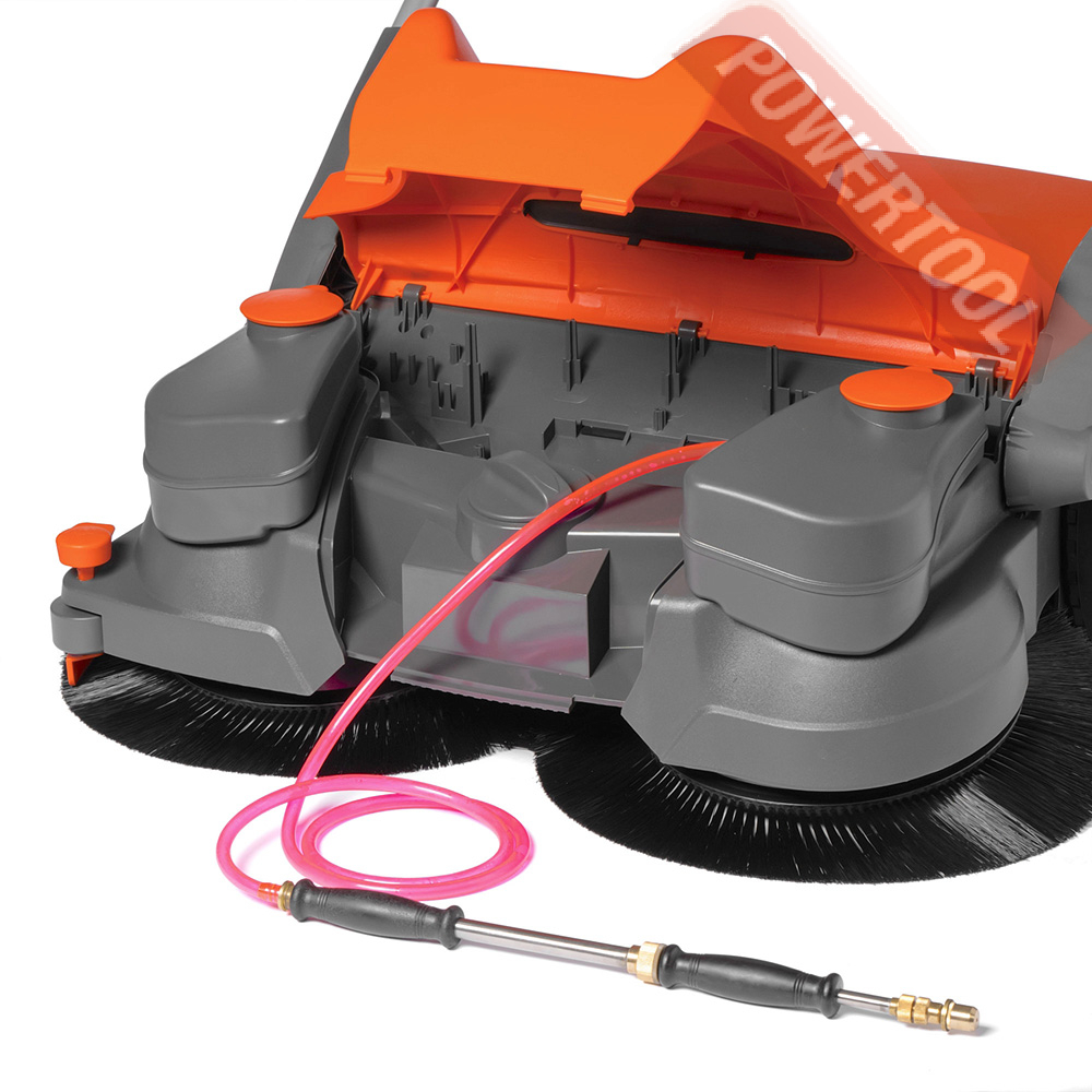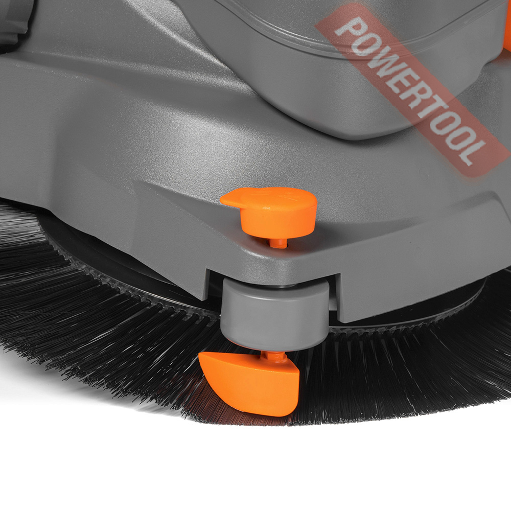 - Регулировка прижима щеток. Позволяет оптимально адаптировать усилие контакта щеток с поверхностью, обеспечивая качественную уборку разных покрытий — от гладких полов до шероховатых дорожных покрытий.