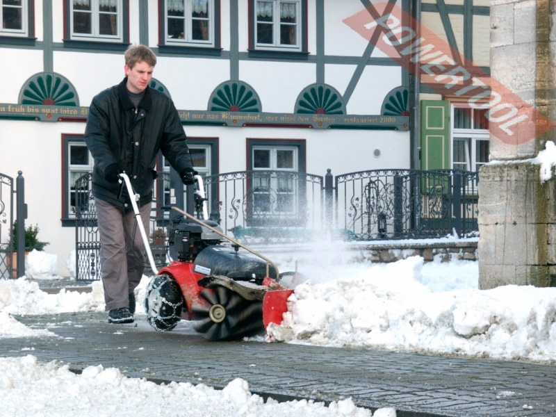 • Рабочая ширина 80 см. Универсальная щетка диаметром 300 мм подходит для эксплуатации в летних и зимних условиях. Привод на щетку передается через ременную передачу.
