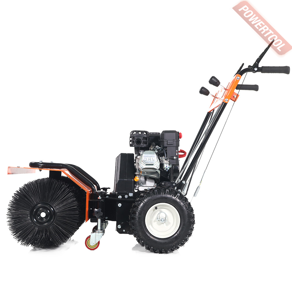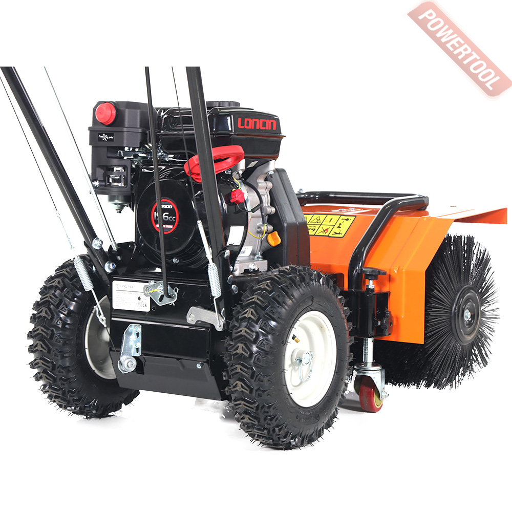 Самоходная щеточная подметальная машина, ширина щетки 60 см, диаметр щетки 34,5 см, скорости 5 вперед и 2 назад, фрикционный диск, мах скорость движения 5 км/ч, произоводительность 3000 кв.м/ч, 4-х тактный бензиновый двигатель LONCIN H200 объемом 196 куб.см и мощностью 5,5 л.с, топливный бак 2,5 л, емкость картера 0,5 л, три позиции направления щетки, регулировка щетки по высоте, колеса 33х10,4 см, размеры 1300х600х1100 мм, вес 68 кг.