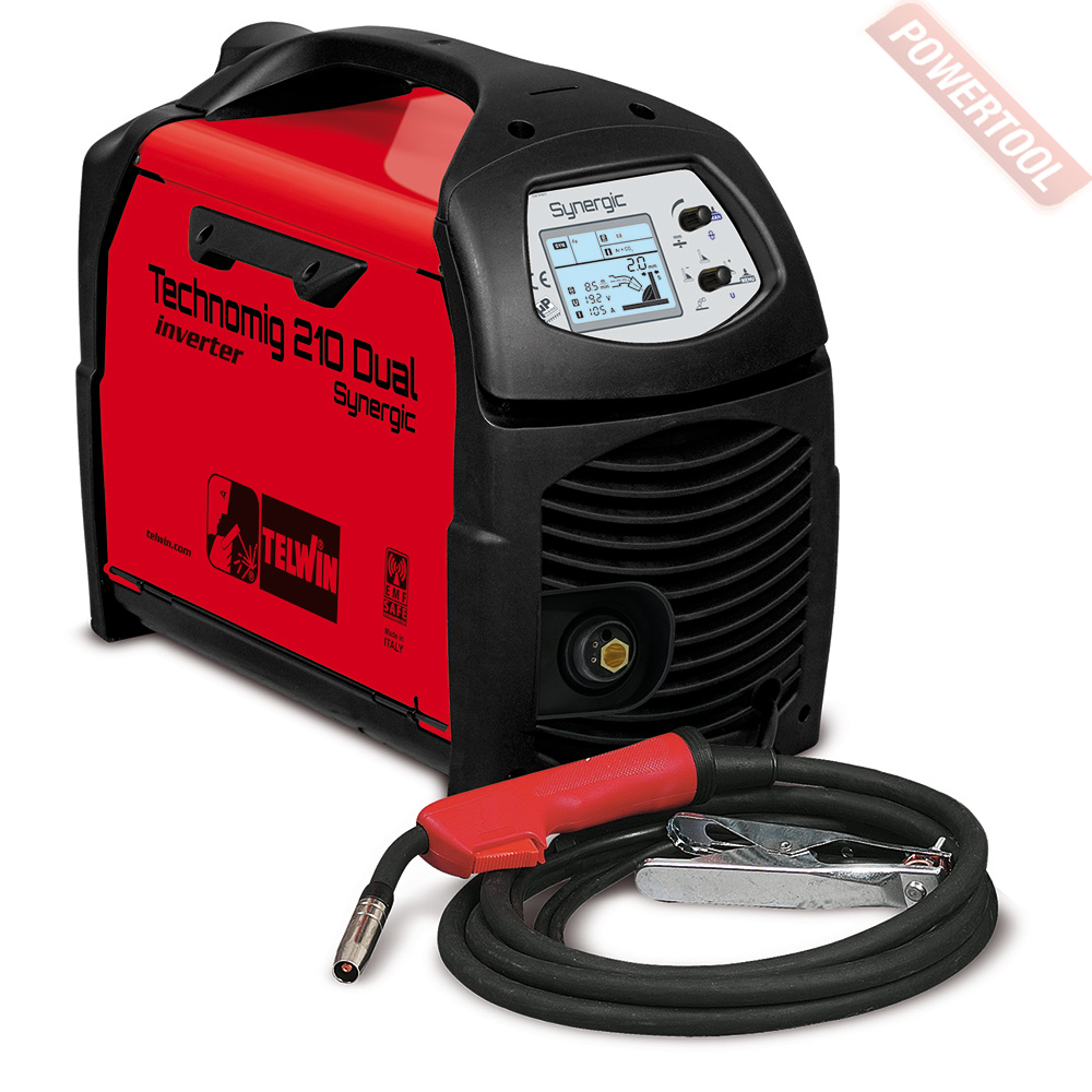 Инверторный сварочный полуавтомат MIG-MAG-FLUX-MMA, однофазный 220 В, напряжение холостого хода 58 В, сварочный ток MIG/MAG 20-120 А, сварочный ток MMA 10-120 А, ПВ при max токе 80 процентов, потребляемая мощность 3,5 кВт, диаметр электрода 1,6-3,2 мм, диаметр проволоки 0,6-0,8 мм, скорость подачи проволоки 0,5-13 м/мин, размер/вес катушки 200 мм / 5 кг, функция AntiStick, функция HotStart, функция ArcForce, класс защиты/изоляции IP21S/F, габариты ДхШхВ 450х230х325 мм, вес 10,4 кг, горелка MIG (2 м), кабель с зажимом на массу, кабель с держателем электрода, щиток сварщика, щетка-молоток.