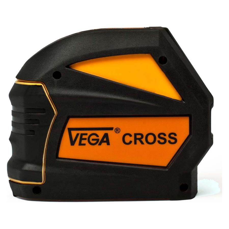 - Корпус прибора имеет надёжную пыле- и влагозащиту по стандарту IP54. Внутренние элементы прибора располагаются в ударопрочном корпусе, который дополнительно защищён резиновой накладкой. Специальное магнитное крепление позволяет закрепить лазерный уровень Vega Cross на любой металлической поверхности, например, балке, швеллере или перекрытии.