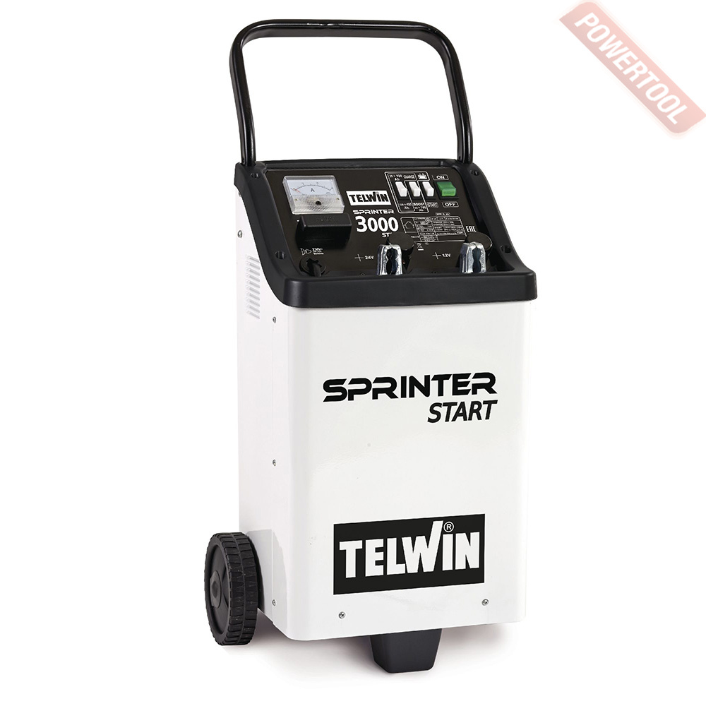 Пуско-зарядное устройство TELWIN Sprinter 3000 Start для зарядки и поддержания заряда аккумуляторов и пусковое устройство (стартер) аккумуляторов со свободным электролитом (WET) с напряжениями 12/24 В. легковых автомобилей, фургонов, тракторов, лодок и легких грузовых автомобилей.