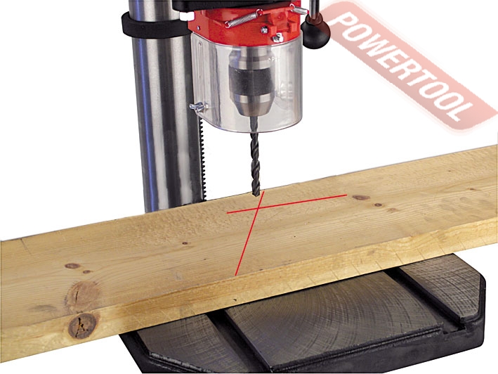 • Лазерный указатель оси сверления. Станок комплектуется лазерным устройством для отображения на поверхности заготовки центра предстоящего отверстия.